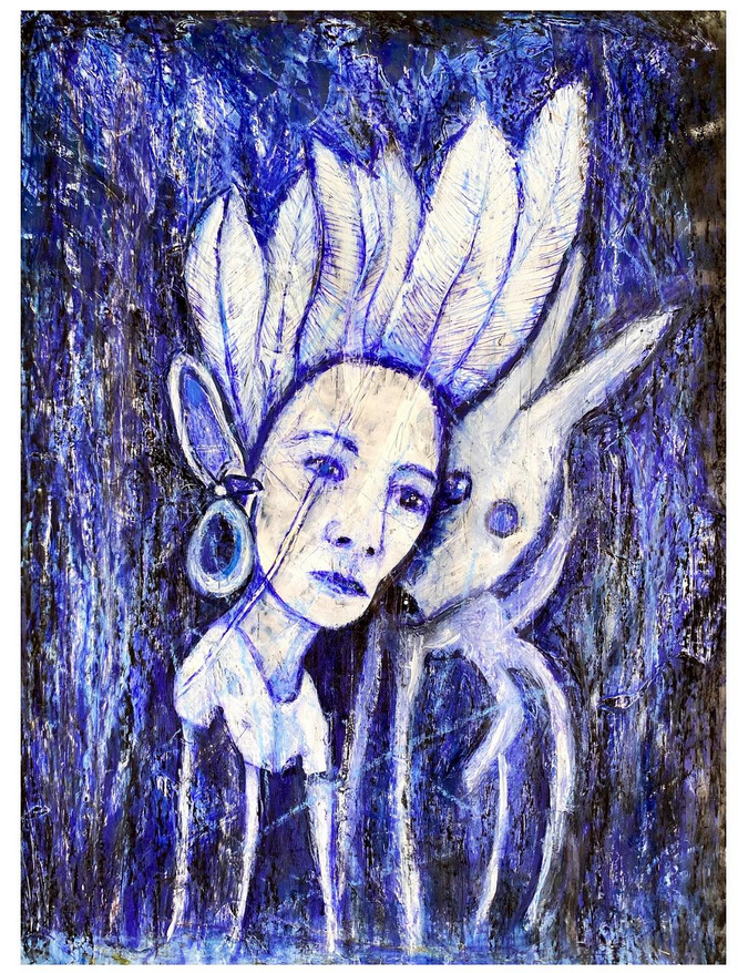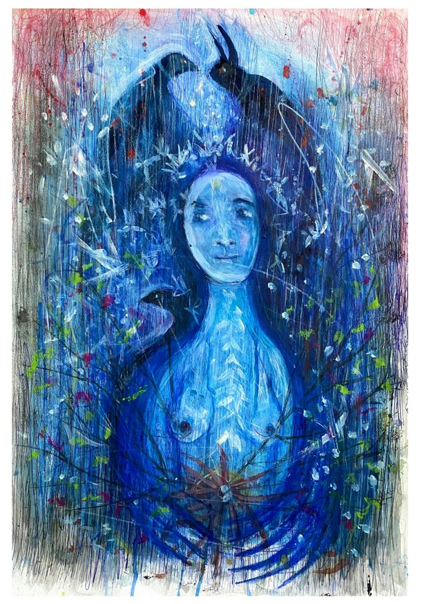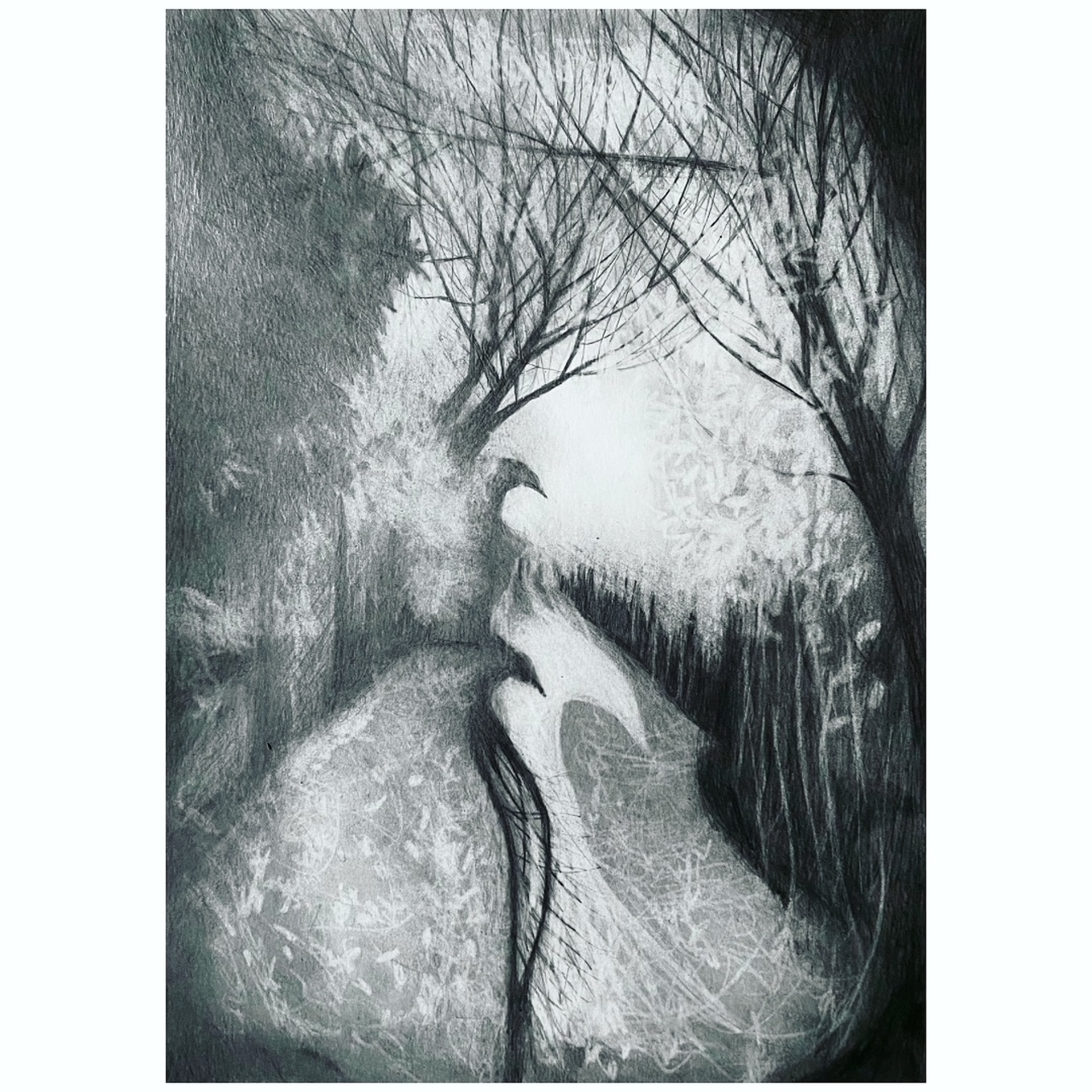 Depuis l’enfance, la création est mon langage : un moyen de traduire l’émerveillement, la sensibilité et les nuances du monde qui m’entoure. Mes médiums principaux sont le dessin figuratif et la peinture, que j’utilise pour développer des univers à la fois poétiques et mystérieux. Mon travail explore les émotions, la résonance intérieure et les imaginaires singuliers.