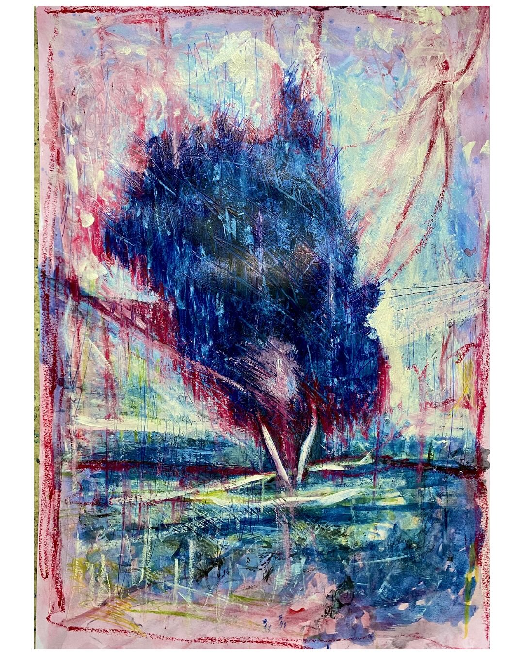 Arbre et personnage technique mixte sur papier 2023 24X32 cm