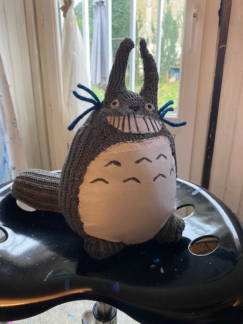 J’ai aussi envoyé un colis à ma sœur avec quelques trucs utiles, mais pas que… J’ai réalisé une peluche « imitation de Totoro » faite avec un pull trop troué ! En fait, j’ai eu quelques soucis de dos un peu avant Noël, j’avais besoin de m’occuper l’esprit, autre que sur la douleur, alors, j’ai trouvé cette occupation – avec une bouillotte dans le dos.