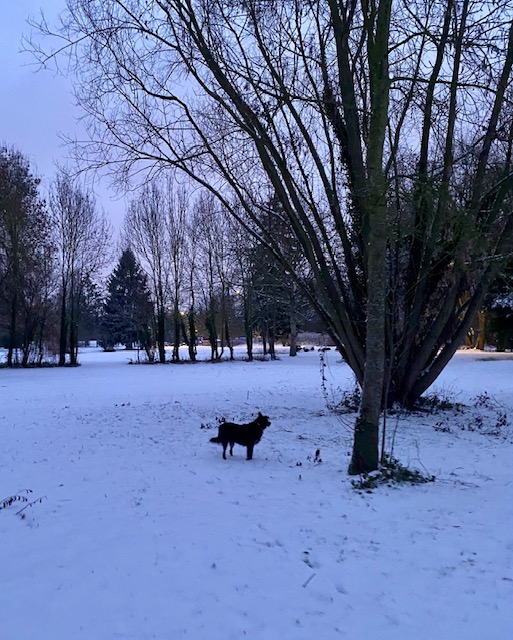 Début janvier, la neige s’est invitée en Sarthe. Trois jours suspendus. Des balades différentes, un paysage apaisé, des bruits étouffés. Marcher dans la neige avec mon chien a été un vrai moment de calme.