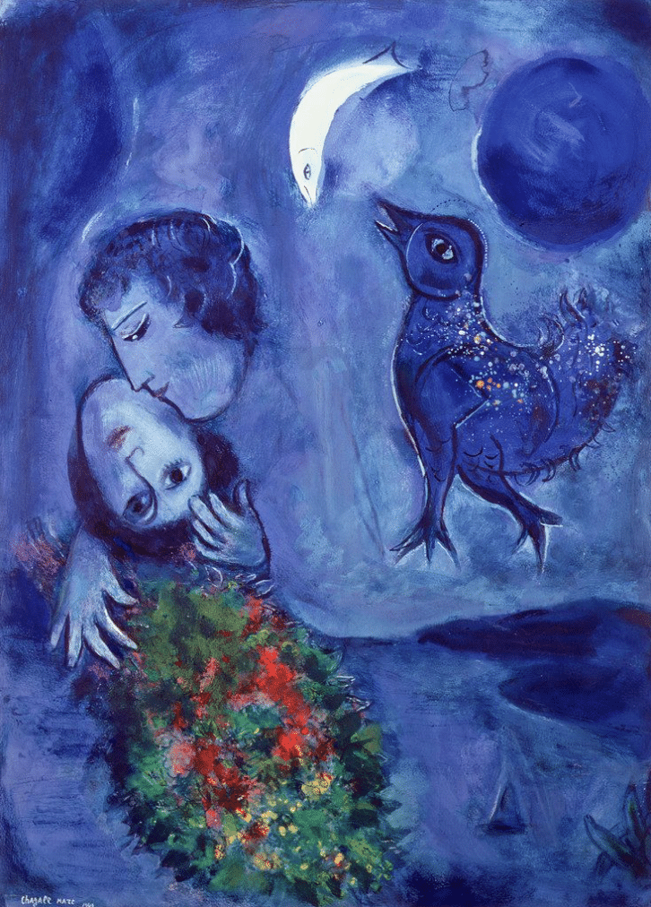 L’omniprésence du bleu chez l’artiste peintre et dessinateur russe Marc Chagall4 résonne comme une invitation à lâcher-prise et à l’onirisme. Le bleu est serein, léger traversé par une poésie de nuances et d’émotions.